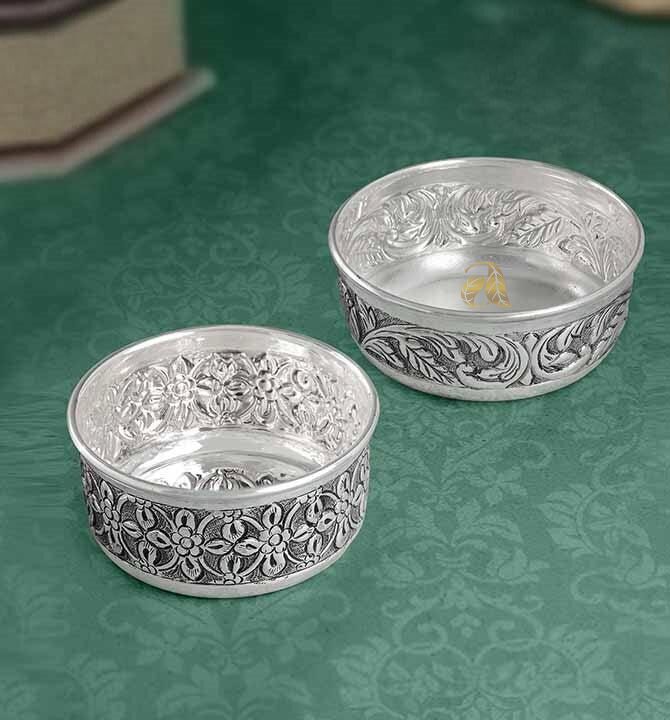 Antique Silver Bowl in Floral MotifAntique Silver Bowl in Floral Motif