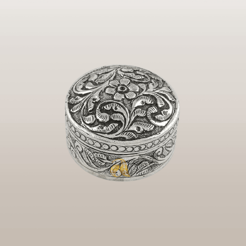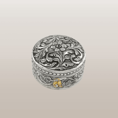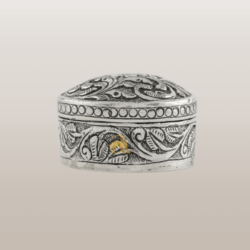 Elegantly adorned with intricate floral motifs, this antique silverBox showcases timeless charm and artistic craftsmanship, embodying a harmonious blend of vintage allure and delicate design.