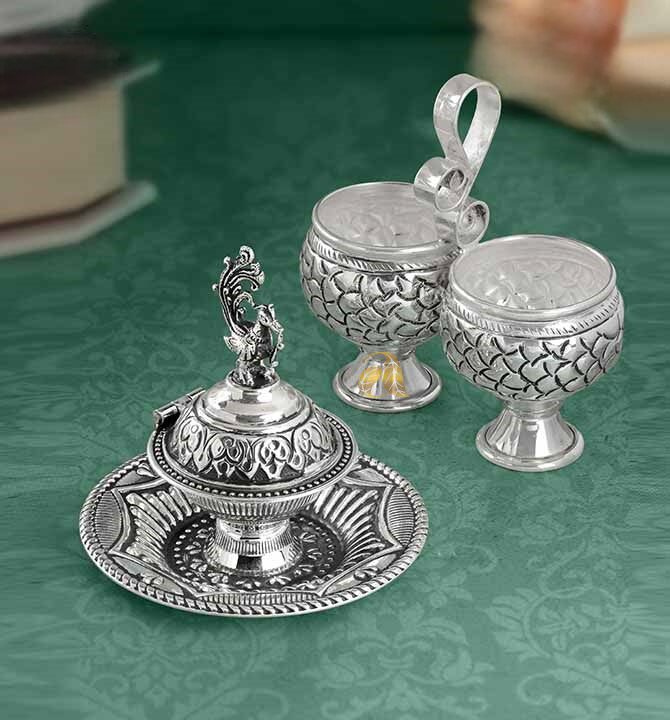 Antique Silver Kumkum Bharni & Panchapali