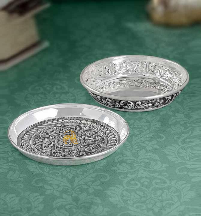 Add a touch of tradition and luxury with our Engraved Silver Plate. Ideal for pooja ceremonies, festive gifting, or as a decorative silver collectible.