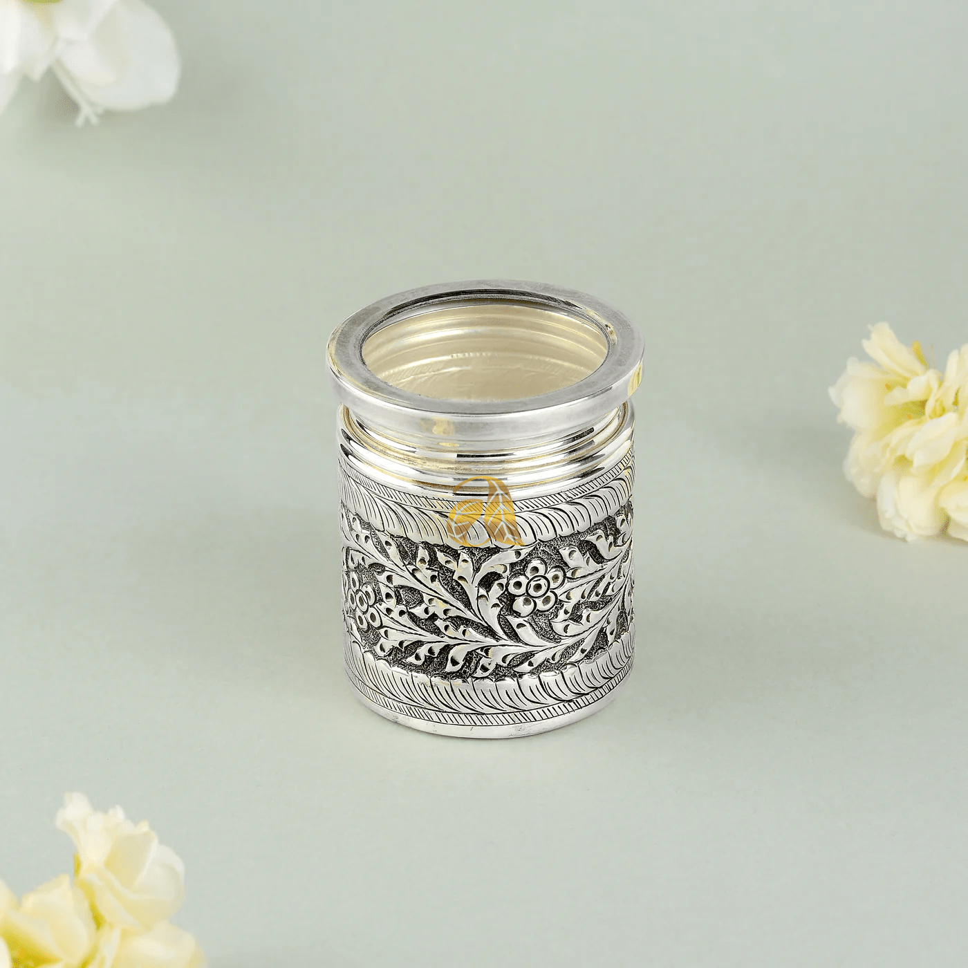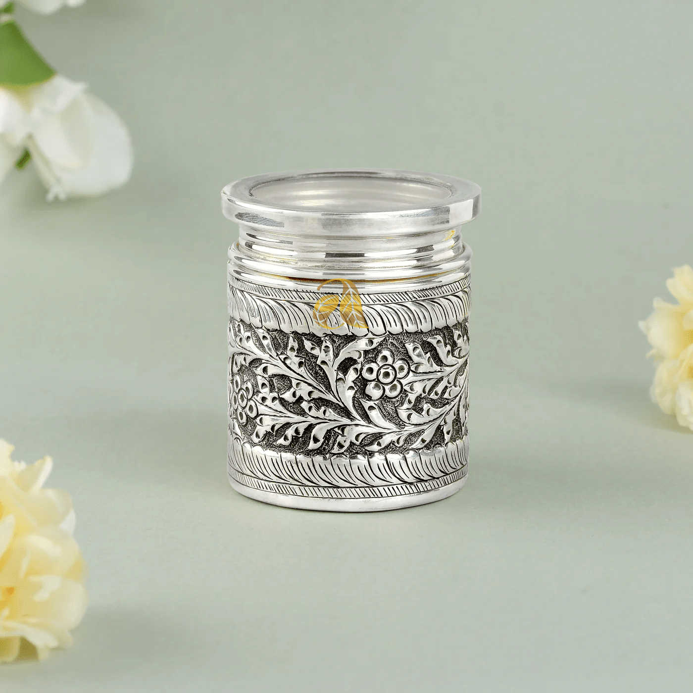 Floral Adorned Silver Dry Fruit Box