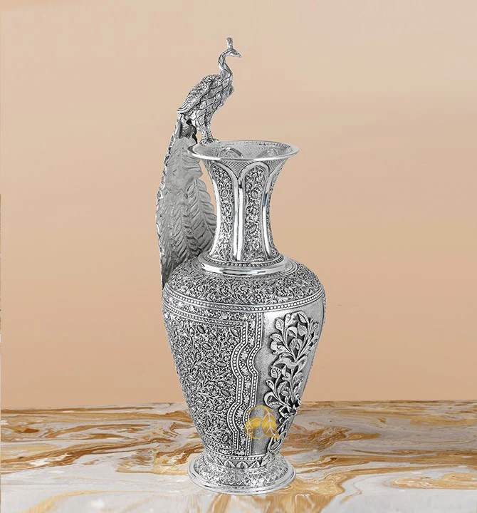 This elegant Peacock Antique Silver Flower Vase features detailed antique-style carving and a beautifully sculpted peacock motif, making it a standout décor and gifting product. Crafted in high-purity silver with intricate workmanship, it offers excellent durability and premium visual appeal. A fast-moving wholesale item ideal for retailers, home décor stores, and luxury gifting collections.